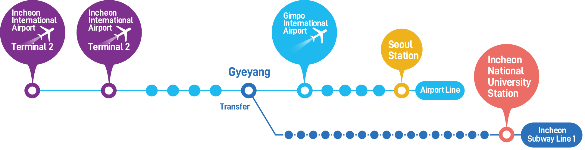| 2) Transfer at Gyeyang Station to Incheon Line #1 |